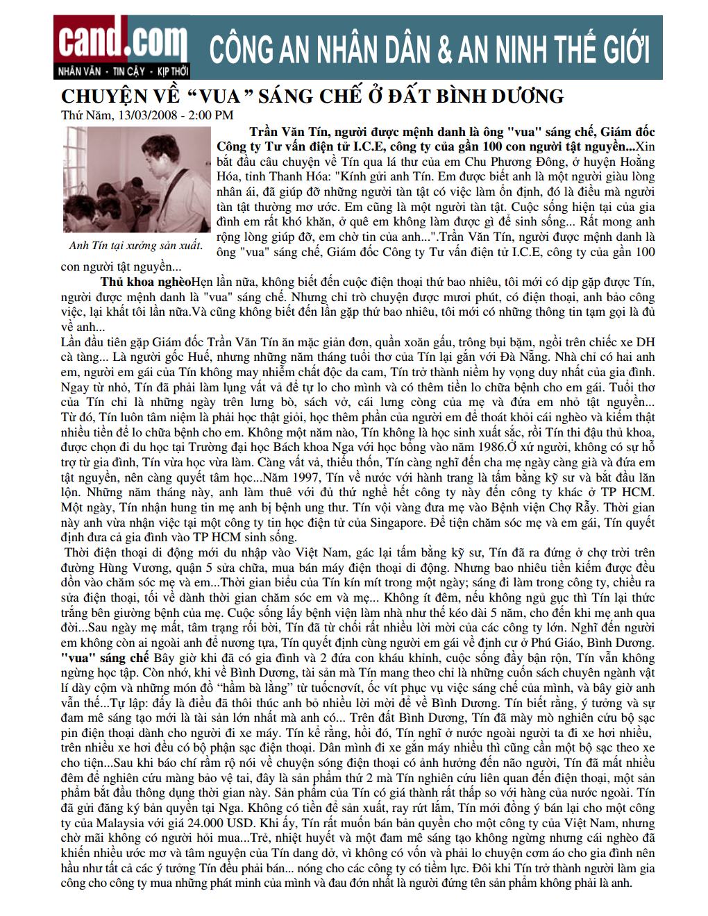 Báo CAND: "Chuyện về vua sáng chế ở đất Bình Dương"