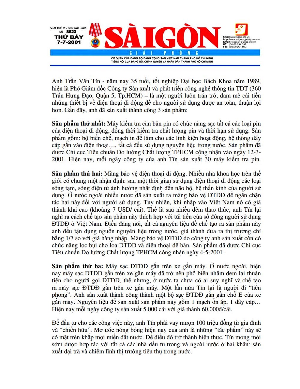 Báo SGGP: "Ba Sáng Chế"