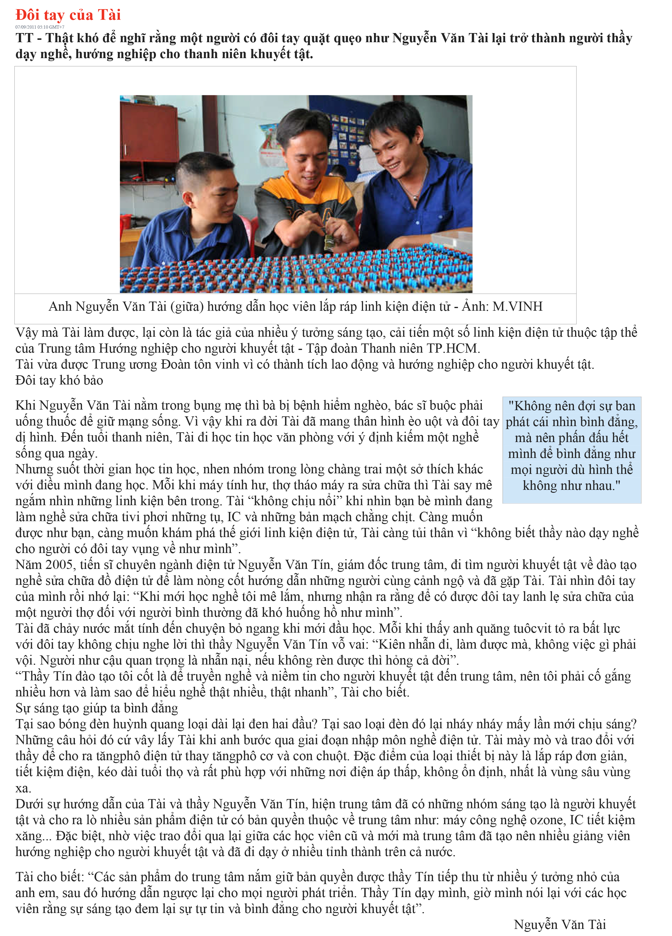 Báo Tuổi Trẻ "Đôi tay của Tài"