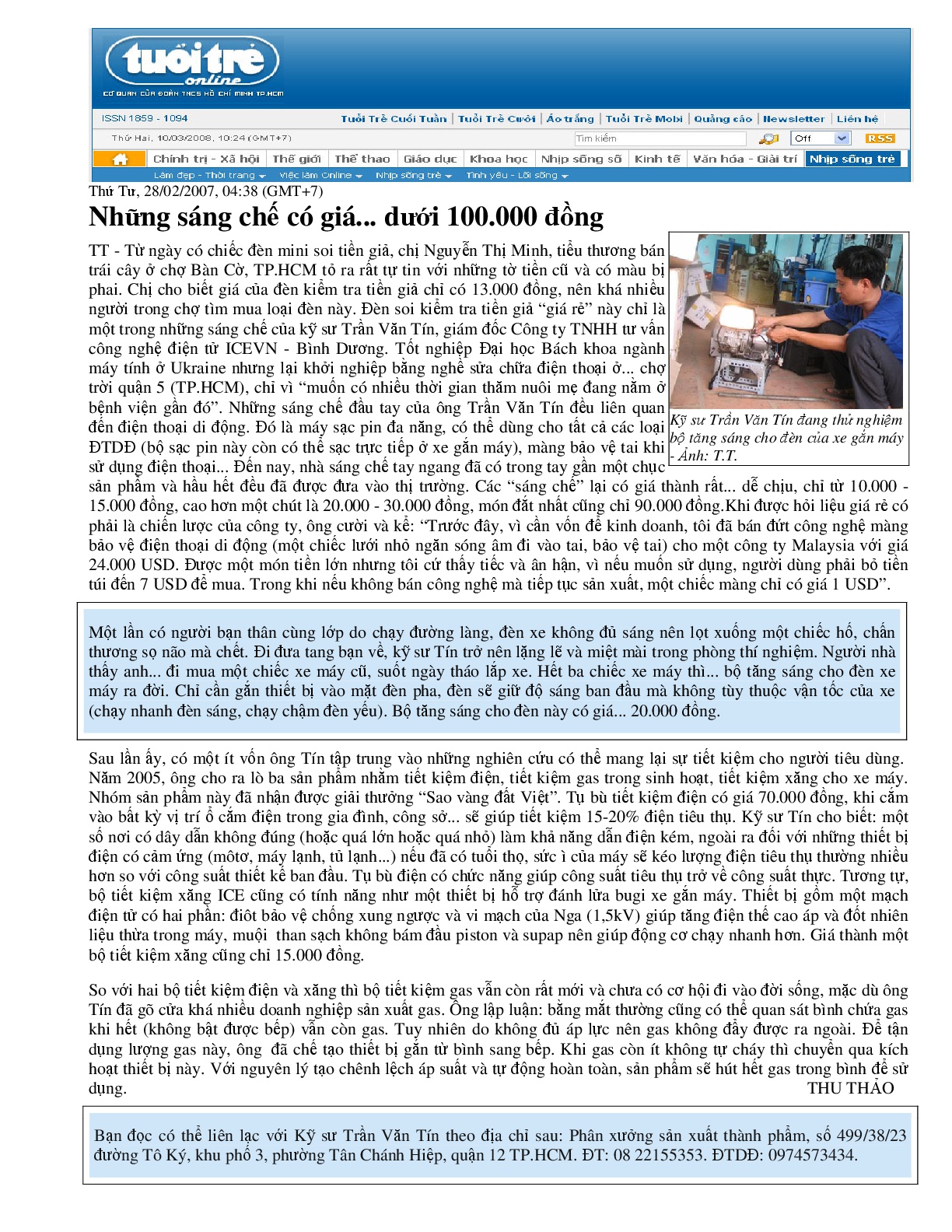 Báo Tuổi Trẻ: "Những sáng chế có giá dưới 100 ngàn"